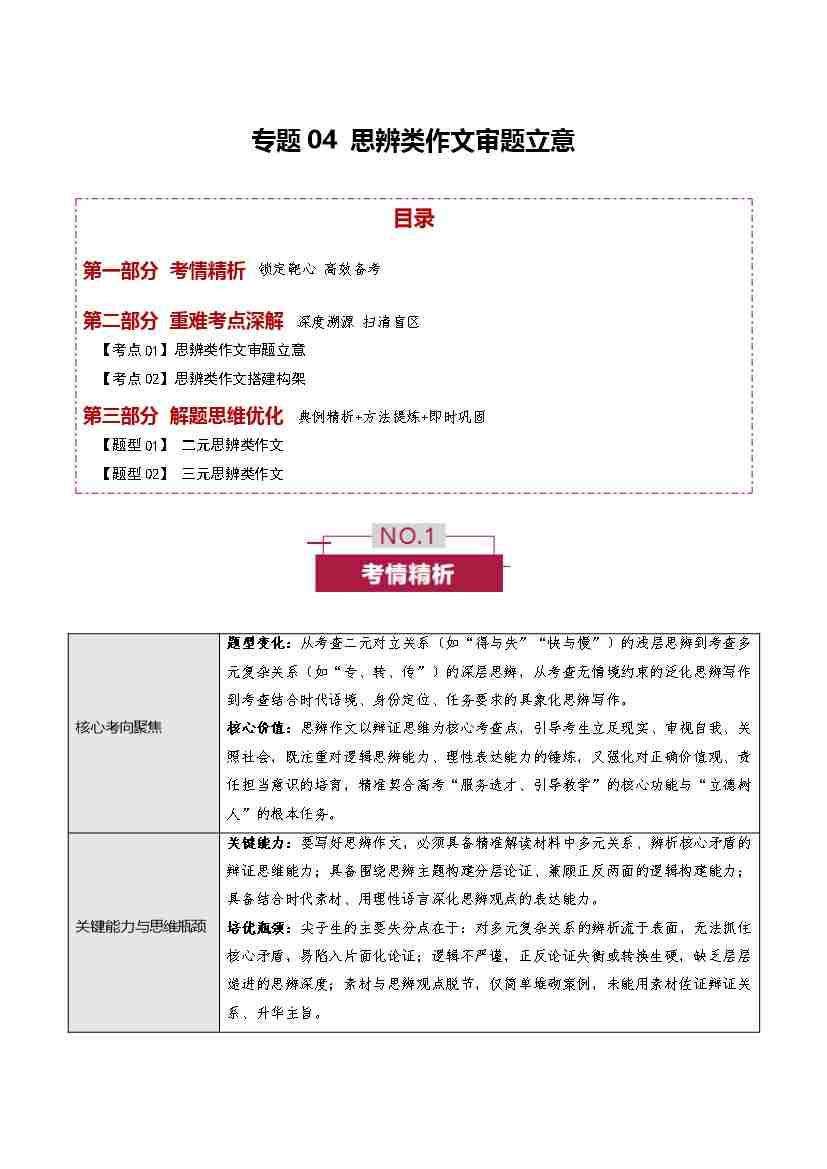 专题04 思辨类作文审题立意(培优讲义)(全国通用)(学生版)