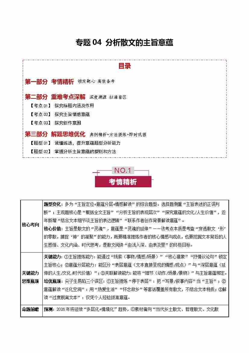 专题04 散文的主旨意蕴(培优讲义)(全国通用)(学生版)