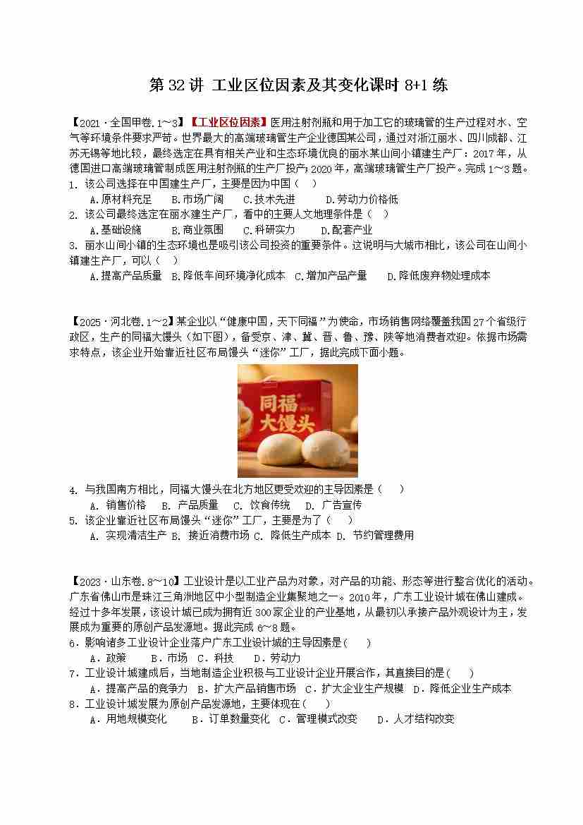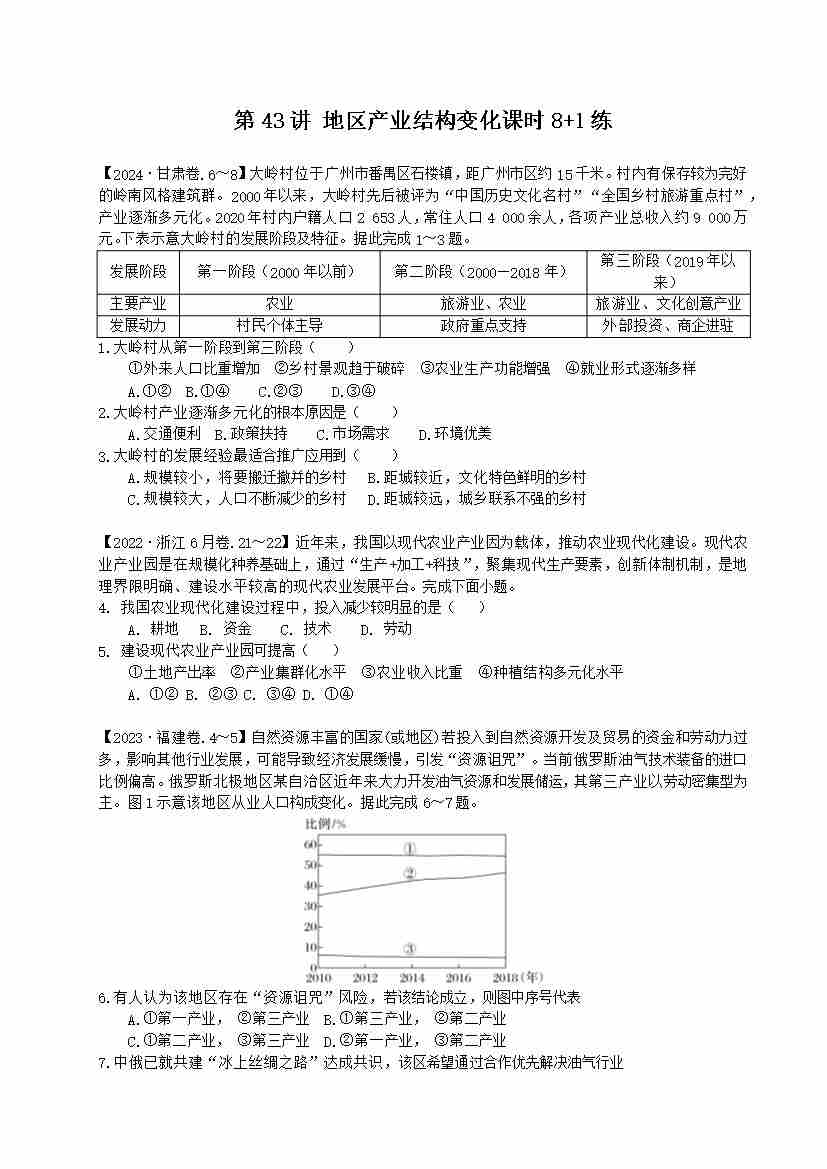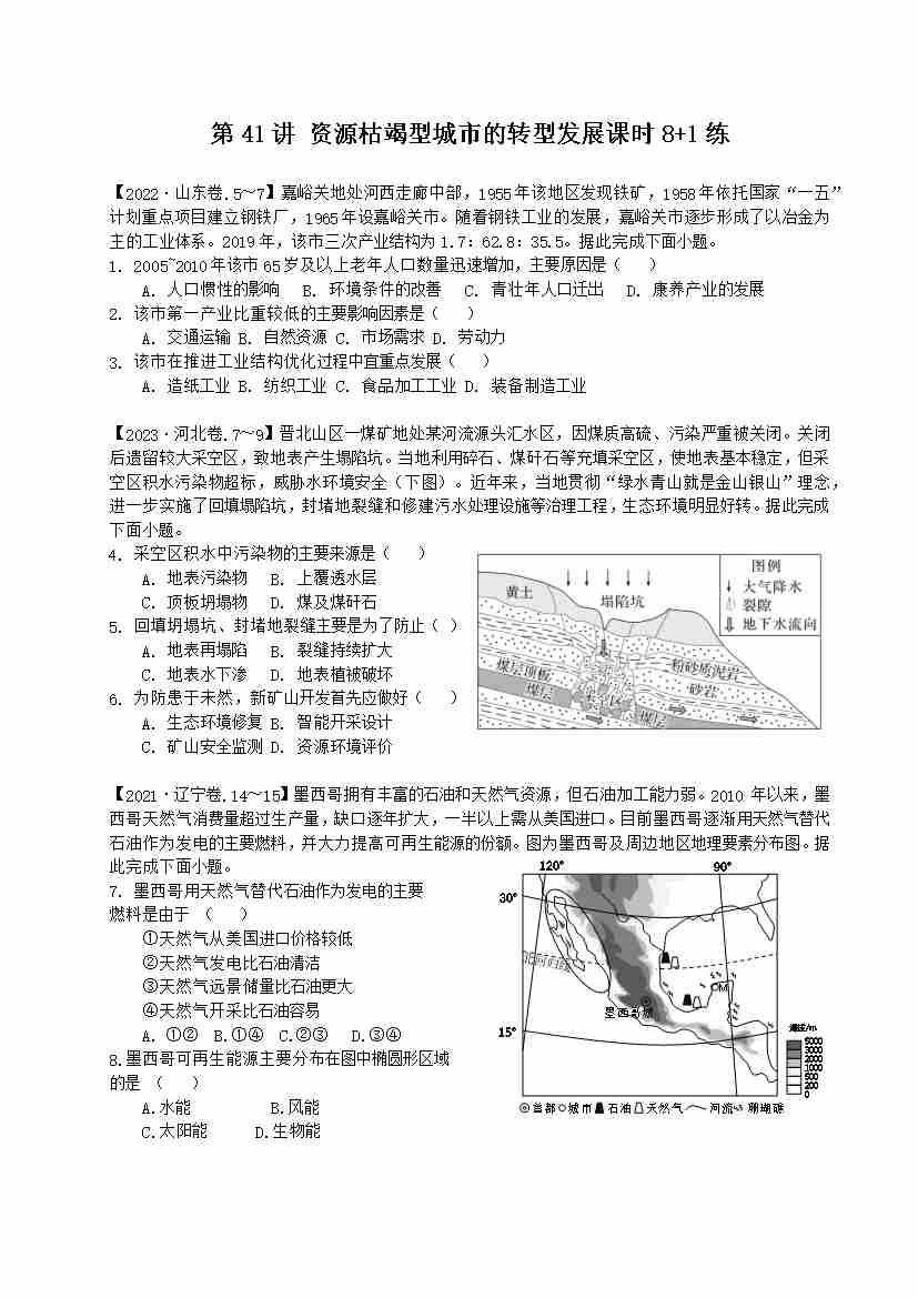 第41讲 资源枯竭型城市的转型发展 专项练习