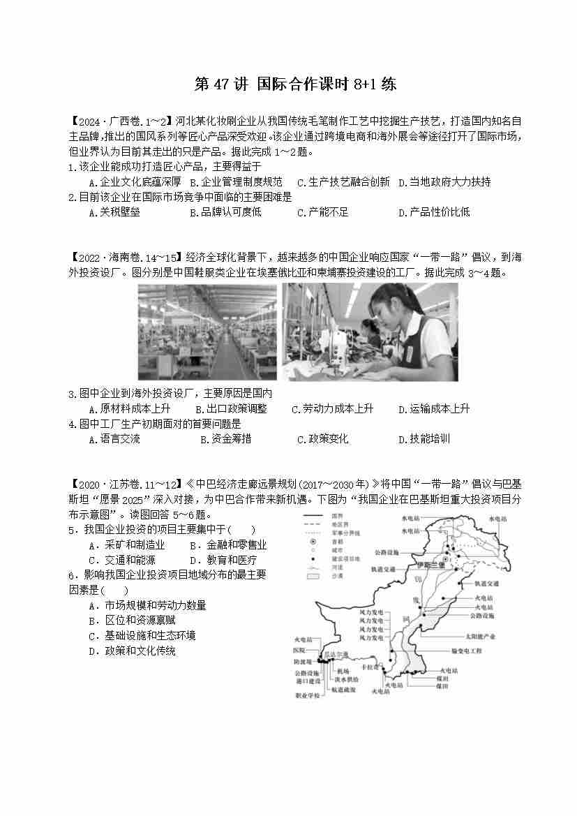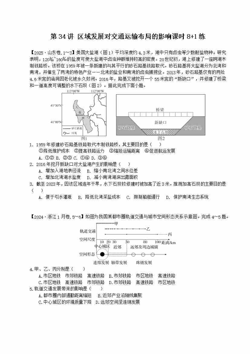 第34讲 区域发展对交通运输布局的影响(专项练习)