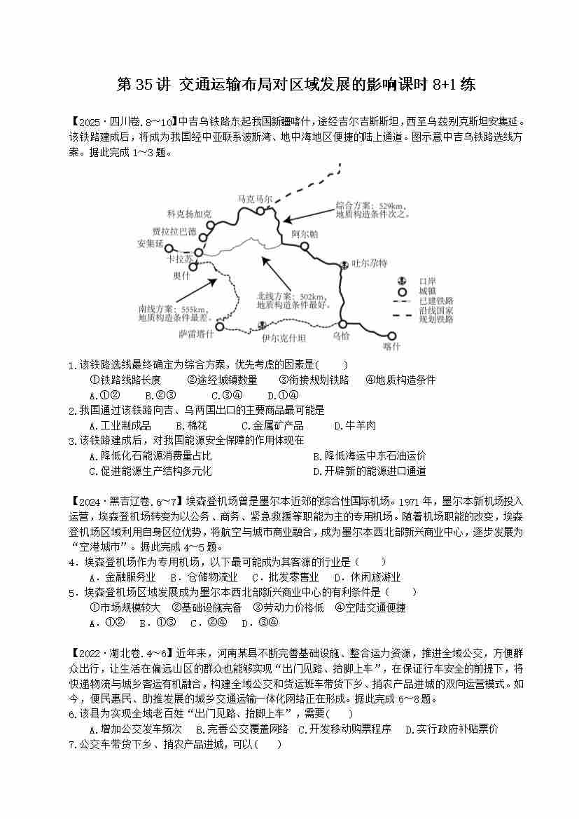 第35讲 交通运输布局对区域发展的影响(专项练习)
