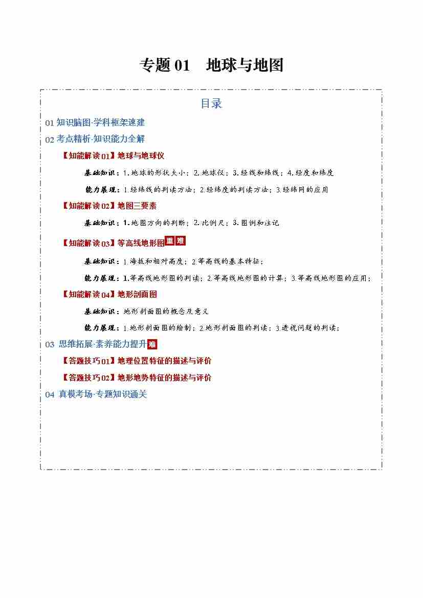 专题01地球与地图(知识清单)(全国通用)(学生版)
