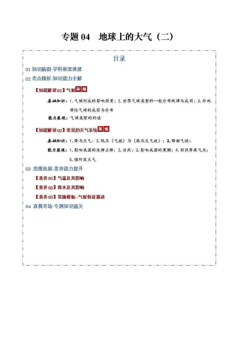专题03 地球上的大气(二)(知识清单)(全国通用)(教师版)