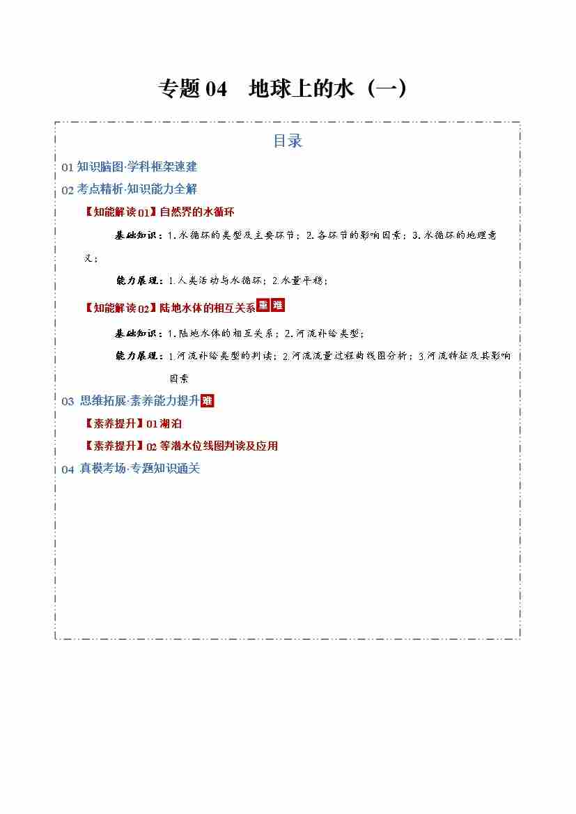 专题04 地球上的水(一)(知识清单)(全国通用)(学生版)