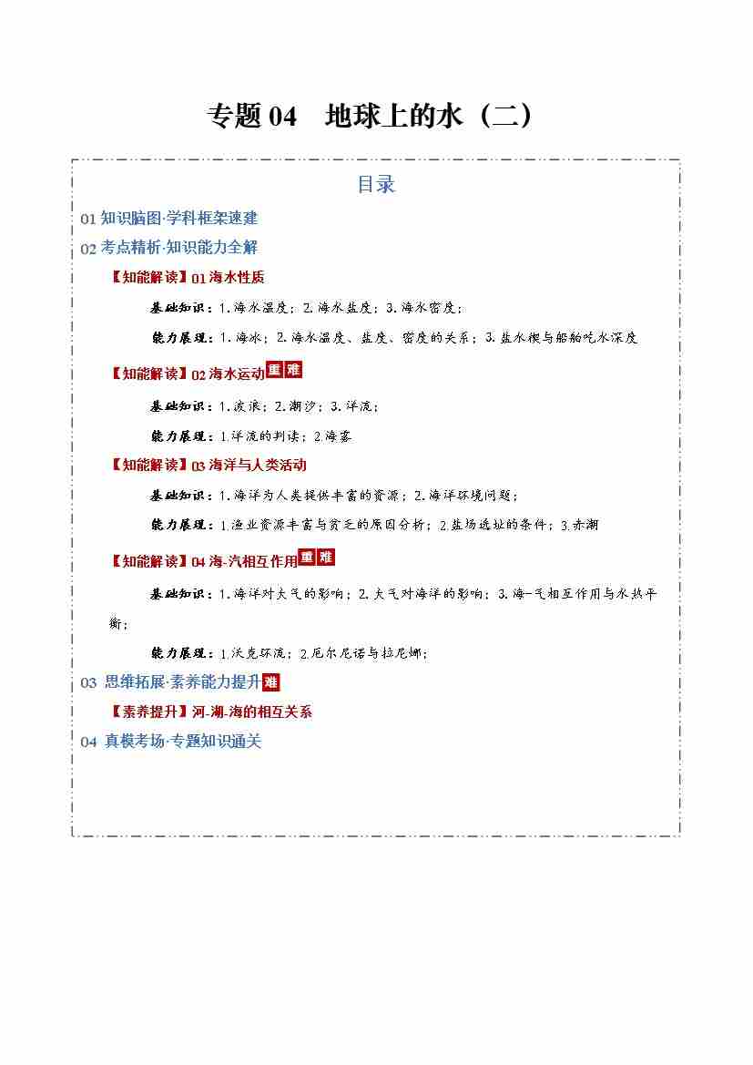专题04 地球上的水(二)(知识清单)(全国通用)(学生版)