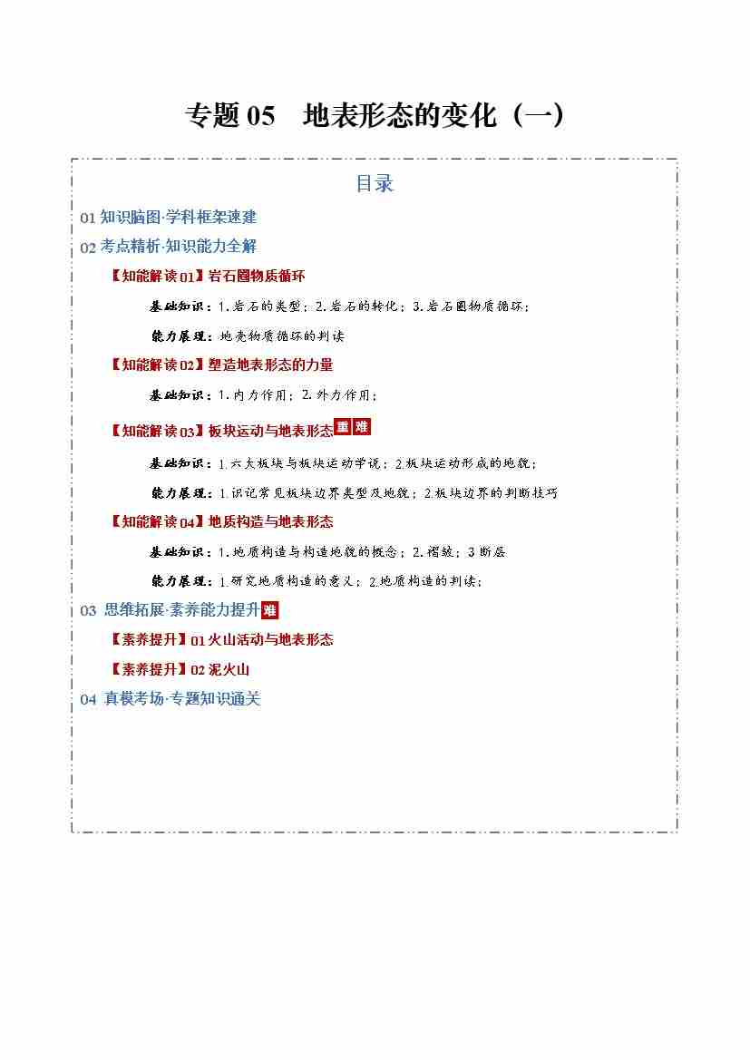 专题05 地表形态的变化(一)(知识清单)(全国通用)(学生版)