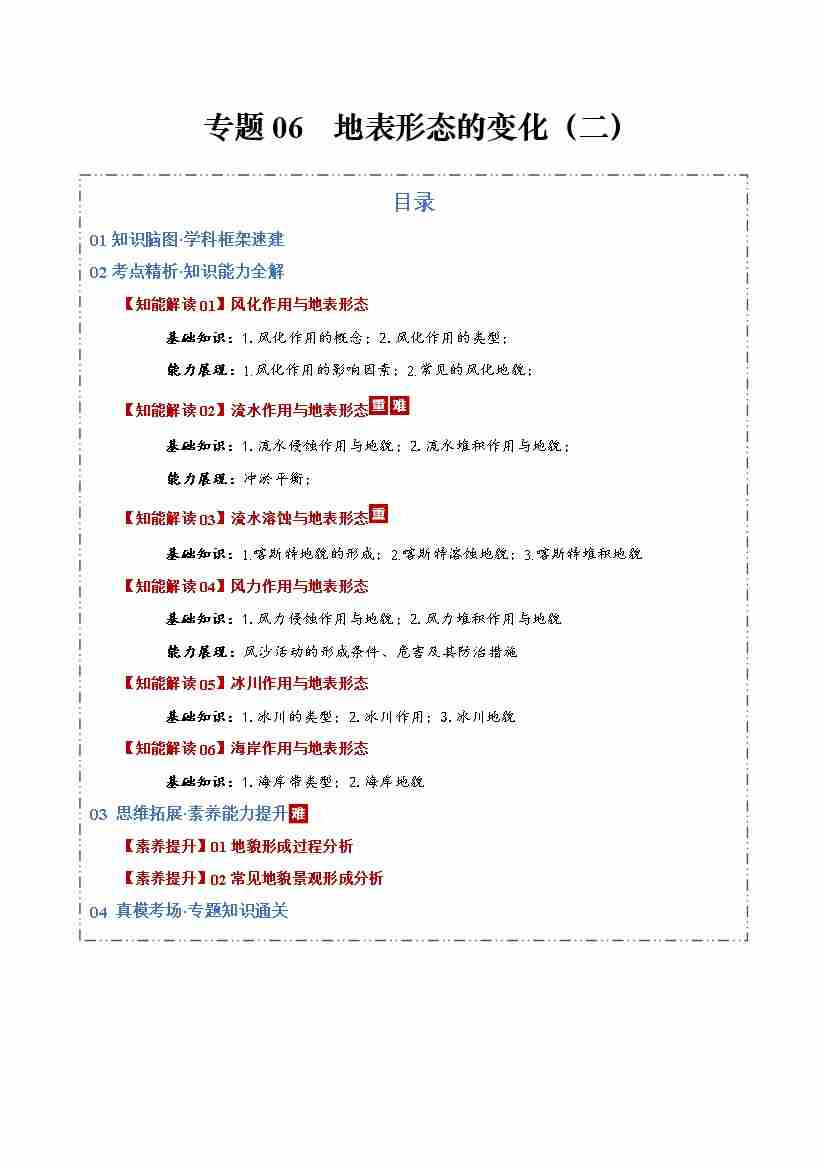 专题06地表形态的变化(二)(知识清单)(全国通用)(学生版)