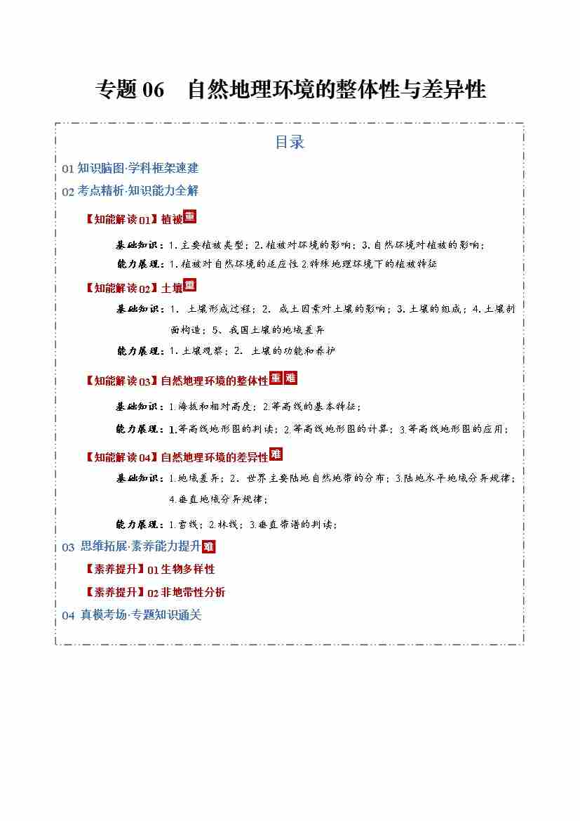 专题06自然地理环境的整体性与差异性(知识清单)(全国通用)(学生版)