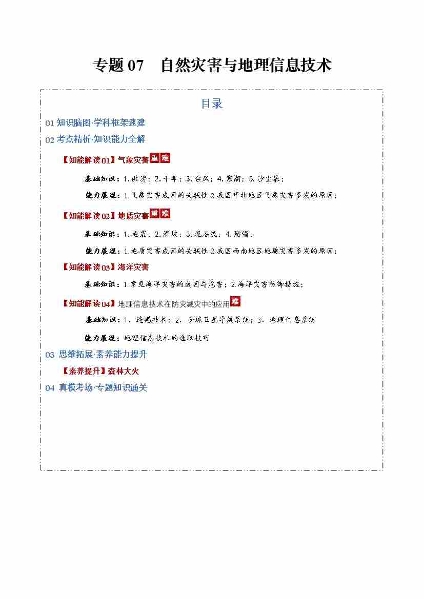 专题07自然灾害与地理信息技术(知识清单)(全国通用)(学生版)