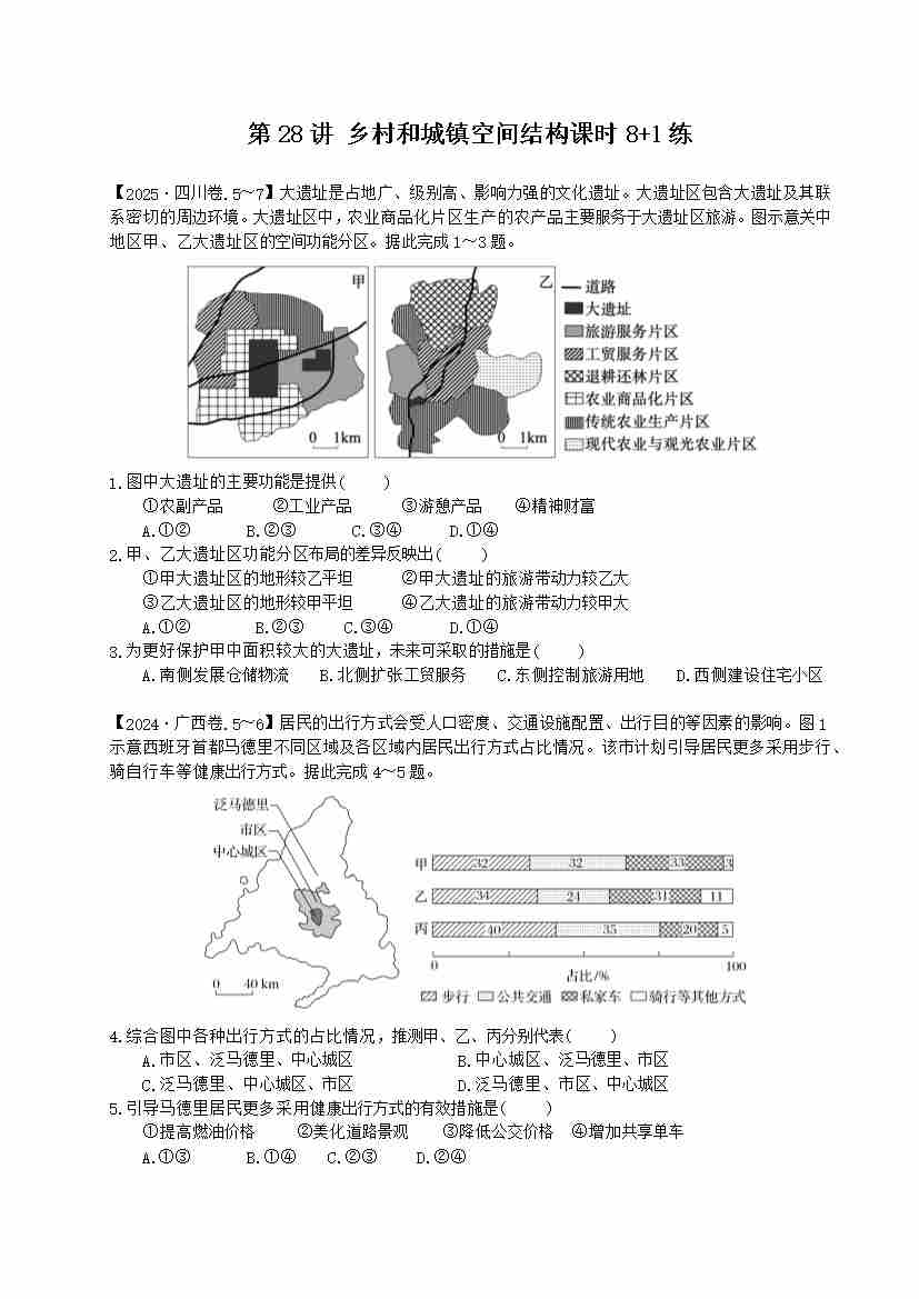 第28讲 乡村和城镇空间结构(专项练习)