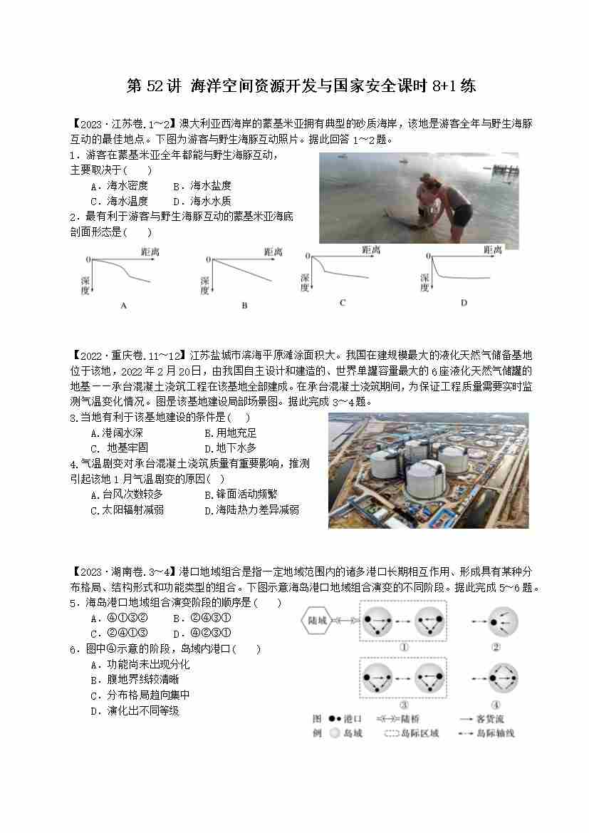 第52讲 海洋空间资源开发与国家安全(专项练习)