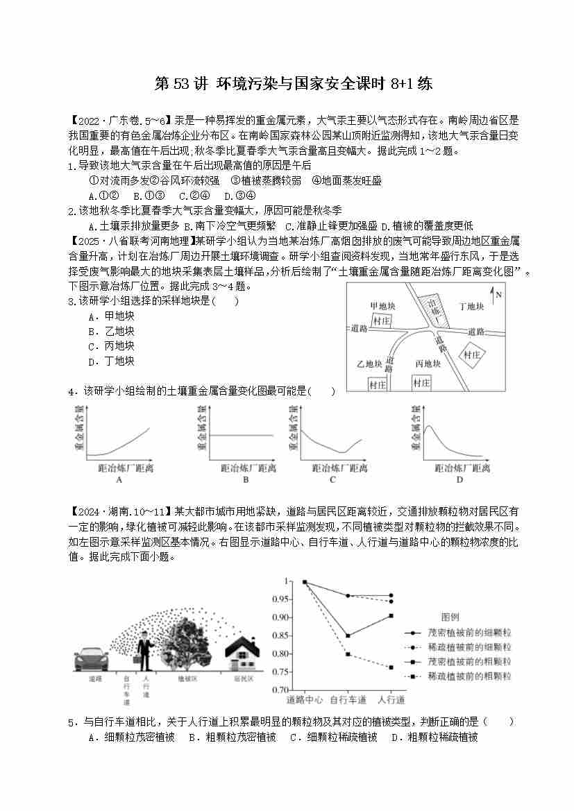 第53讲 环境污染与国家安全(专项练习)