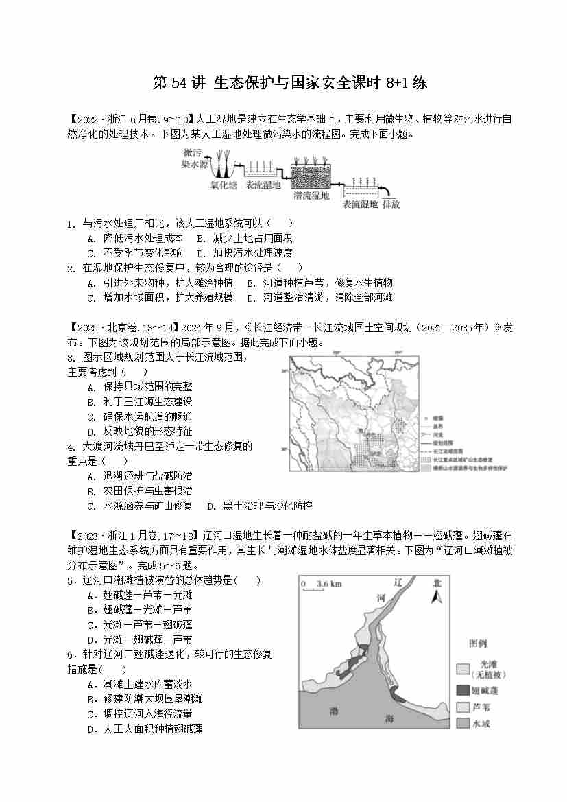 第54讲 生态保护与国家安全(专项练习)