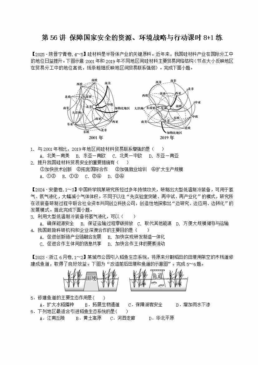 第56讲 保障国家安全的资源、环境战略与行动(专项练习)