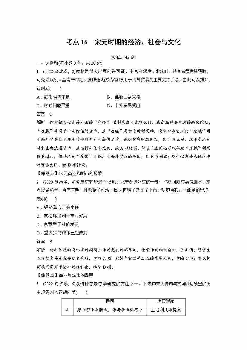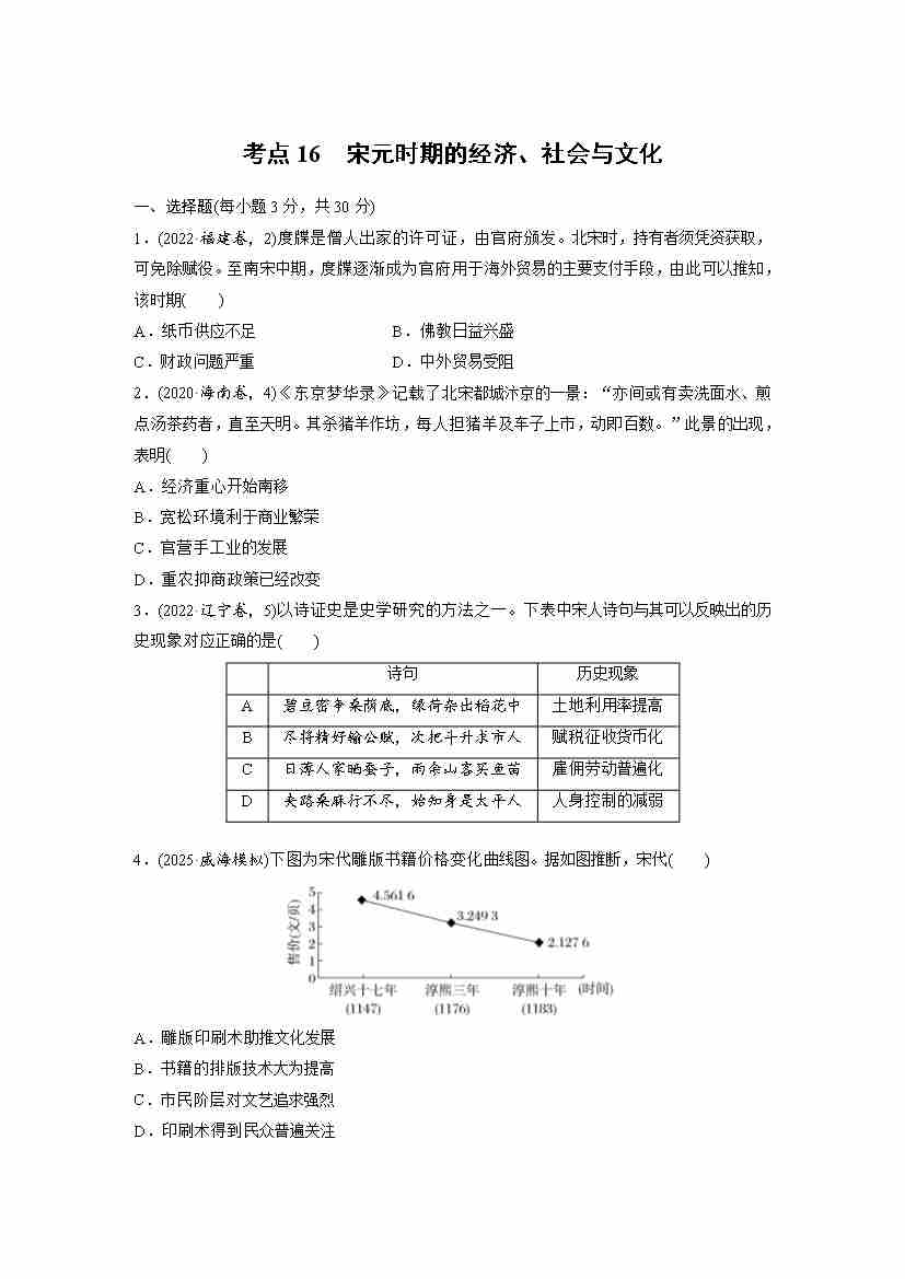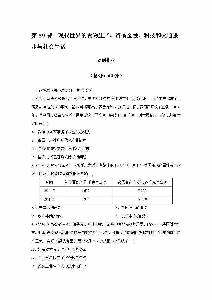 第59课 现代世界的食物生产、贸易金融、科技和交通进步与社会生活 专项训练