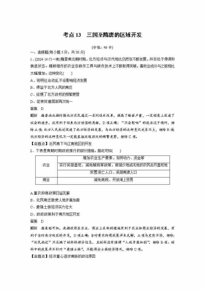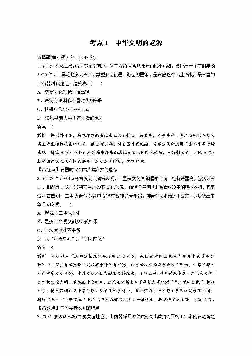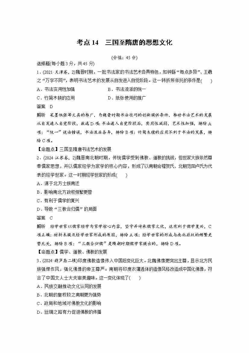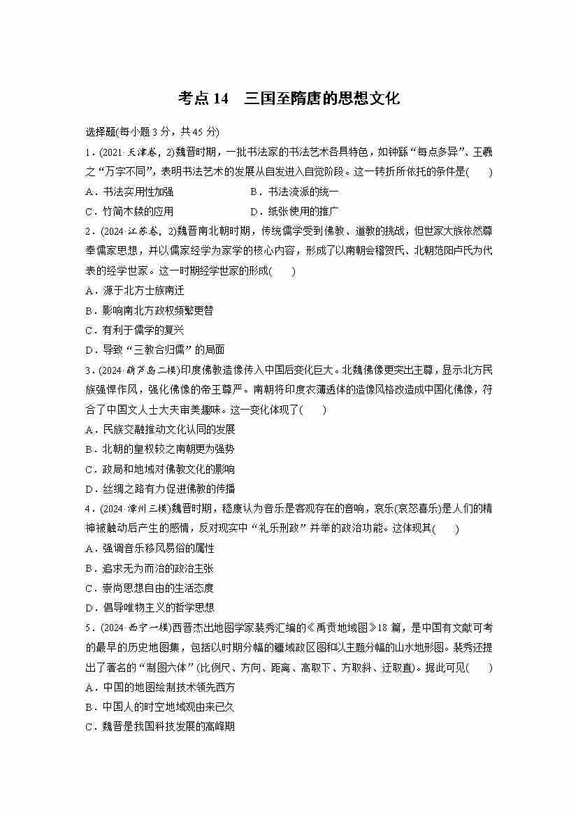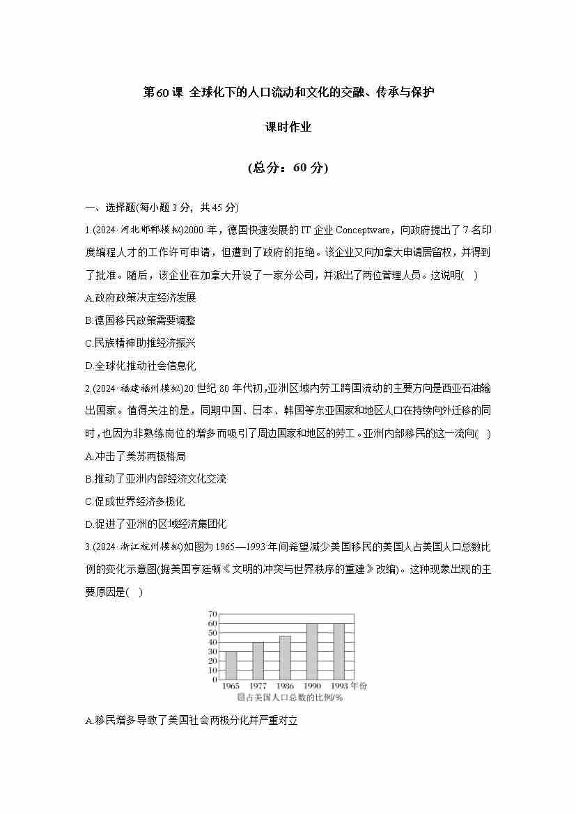 第60课 全球化下的人口流动和文化的交融、传承与保护 专项训练