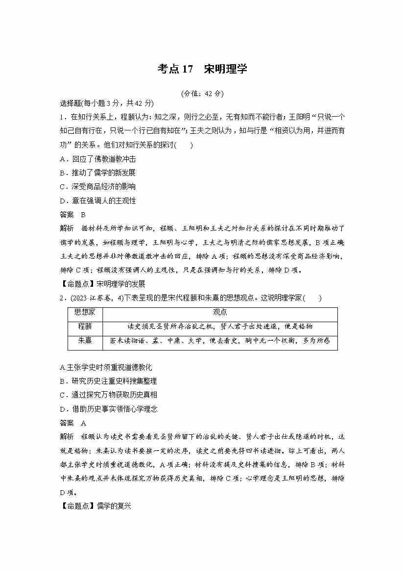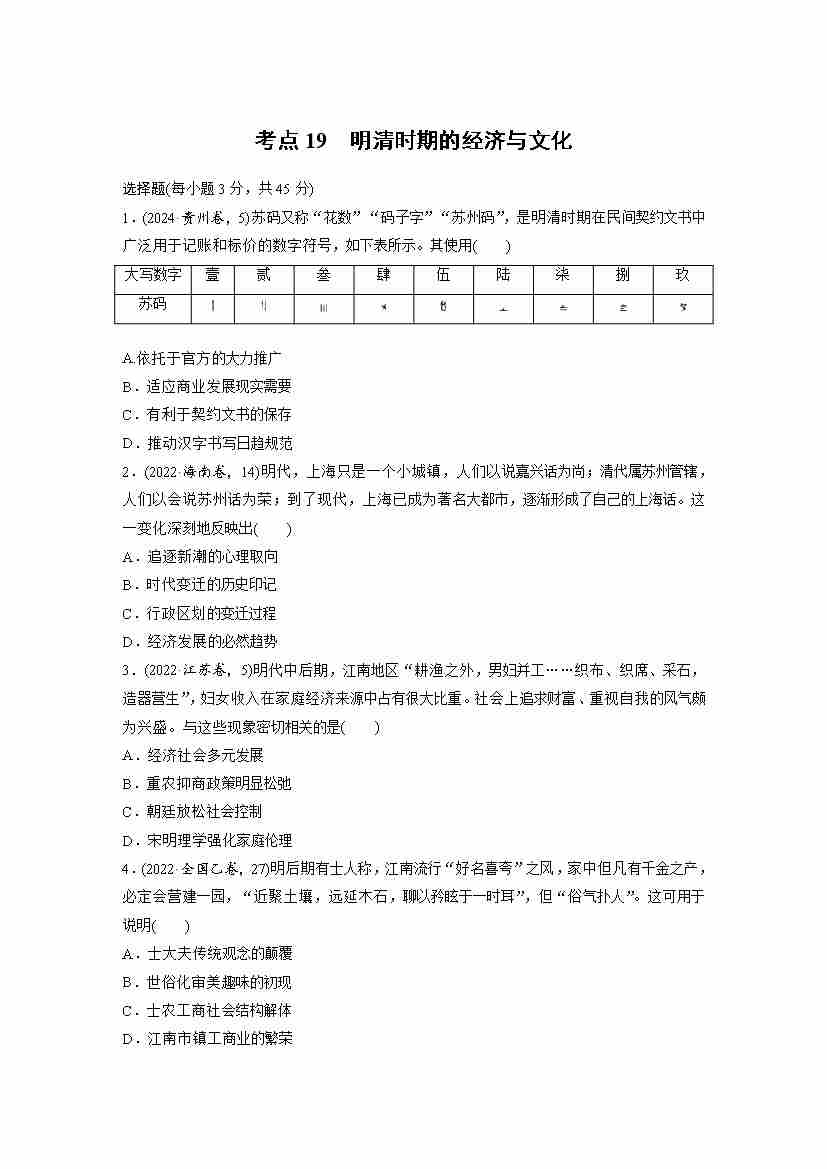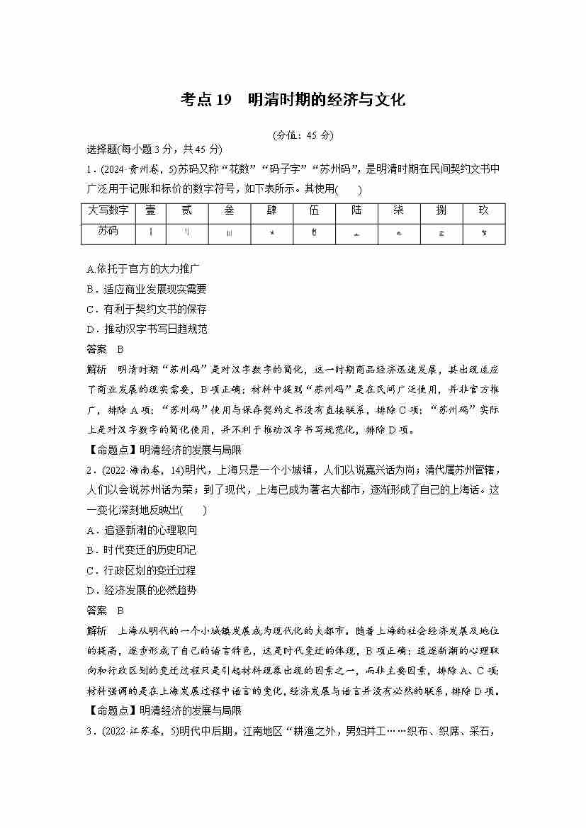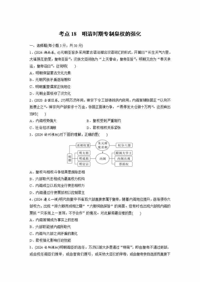 考点20 明清之际进步思潮与西学东渐(教师版)