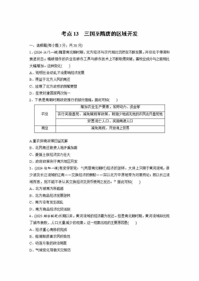 考点13 三国至隋唐的区域开发(学生版)