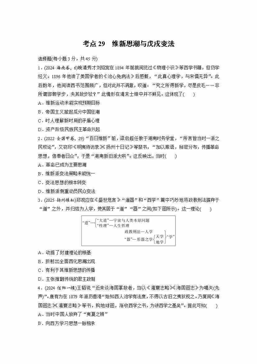 考点29 维新思潮与戊戌变法(学生版)