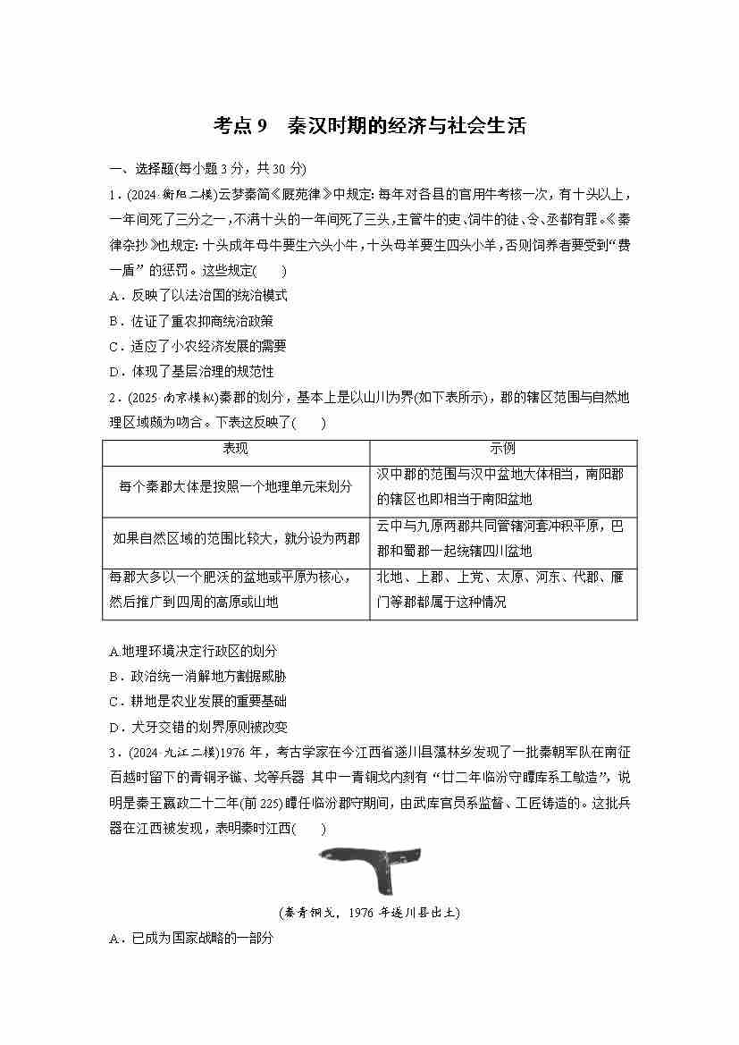 考点9 秦汉时期的经济与社会生活(学生版)