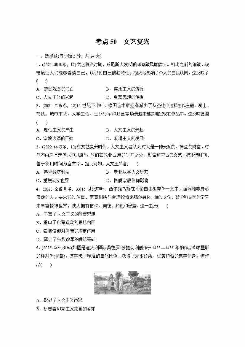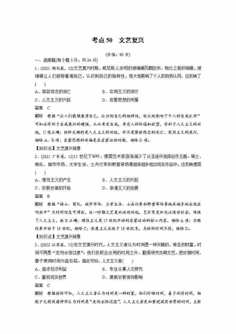 考点50 文艺复兴(教师版)
