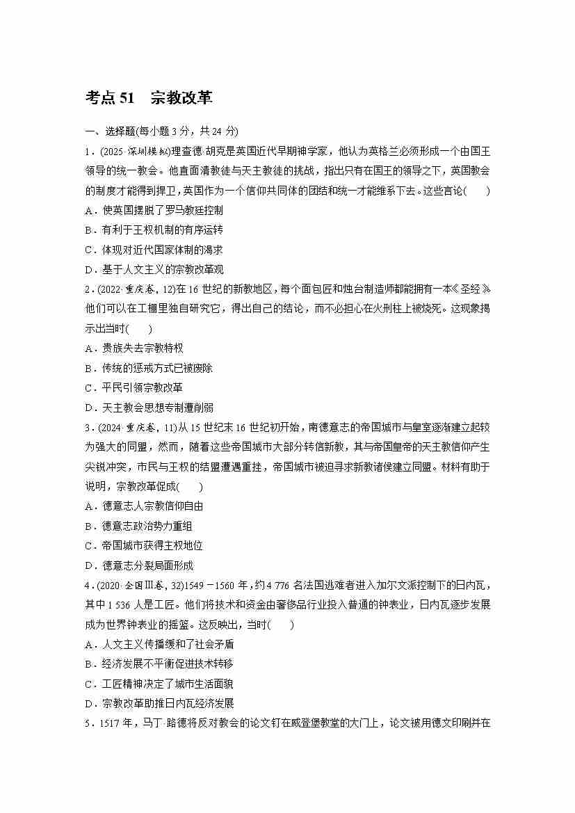 考点51 宗教改革(学生版)