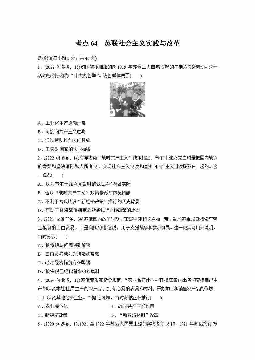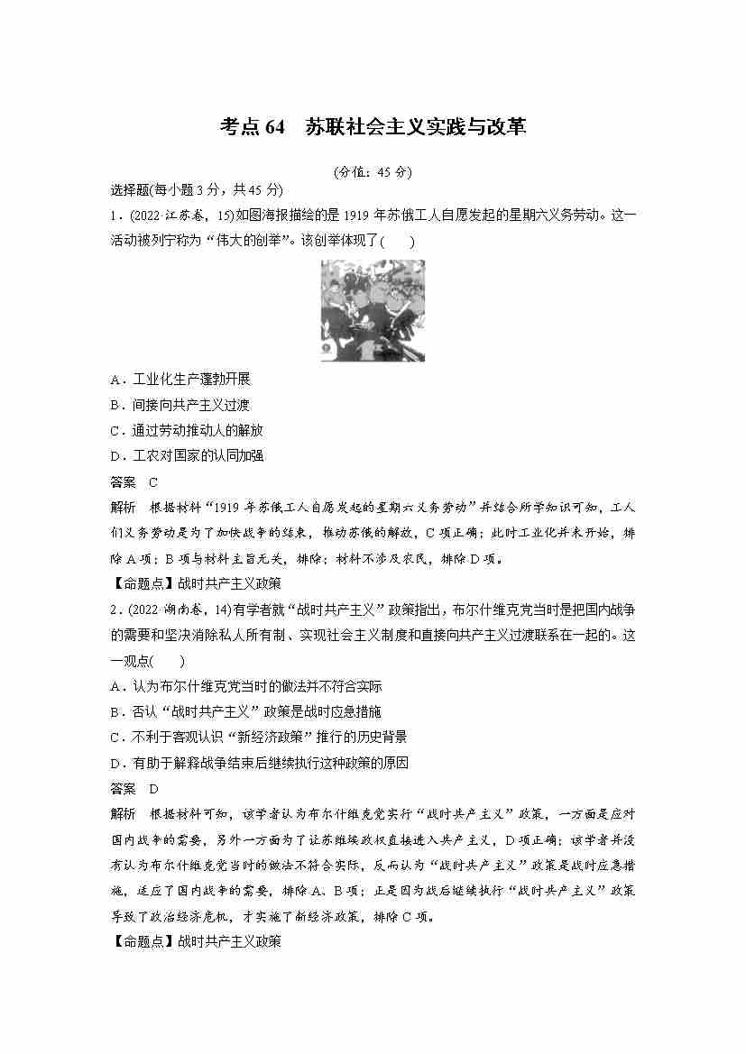 考点64 苏联社会主义实践与改革(教师版)