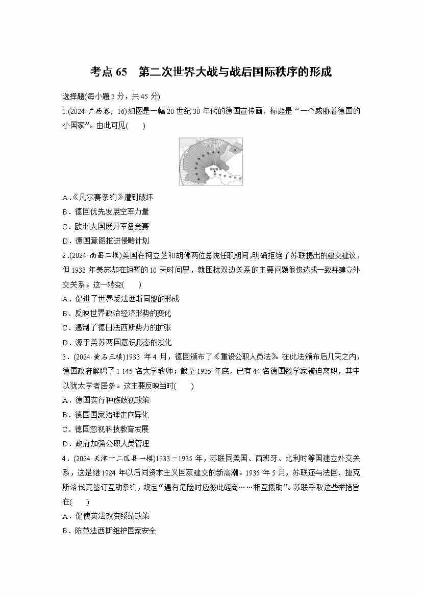 考点65 第二次世界大战与战后国际秩序的形成(学生版)