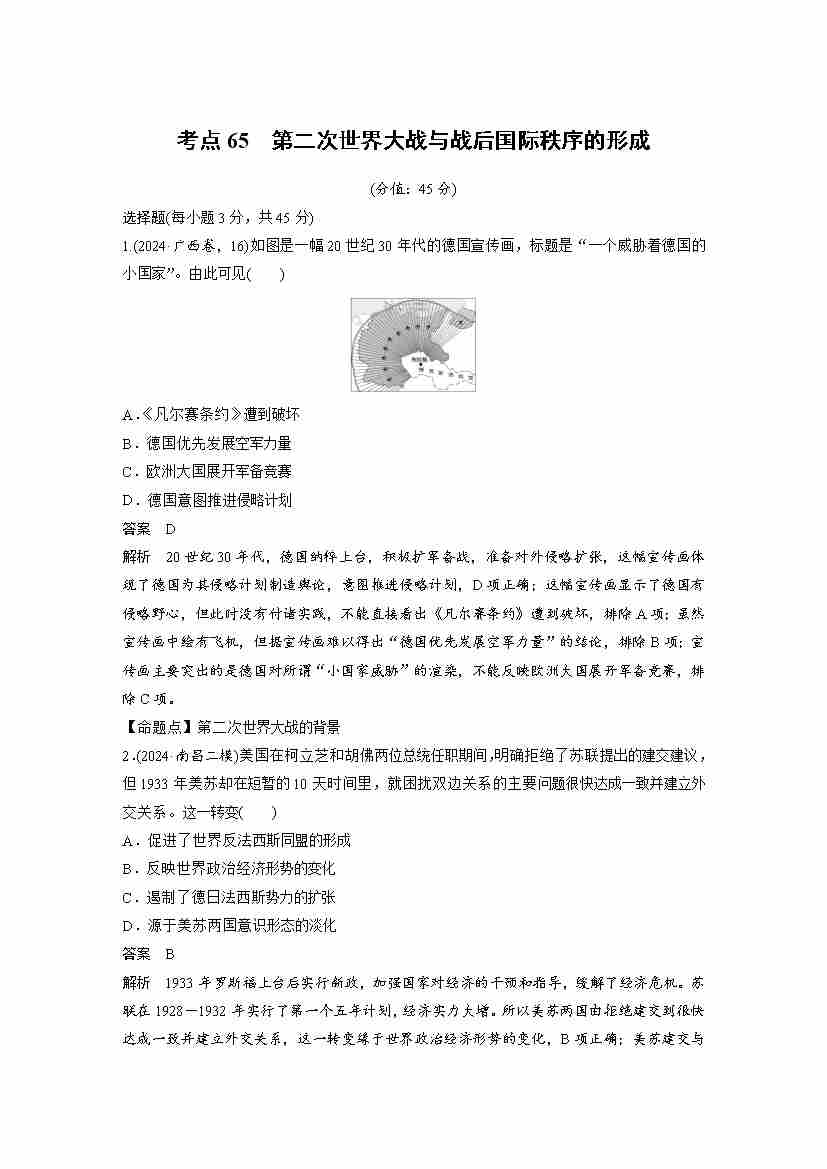 考点65 第二次世界大战与战后国际秩序的形成(教师版)