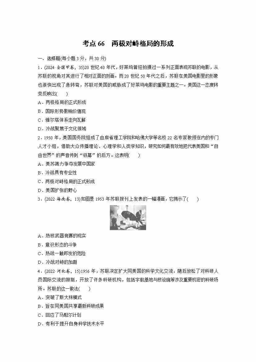 考点66 两极对峙格局的形成(学生版)