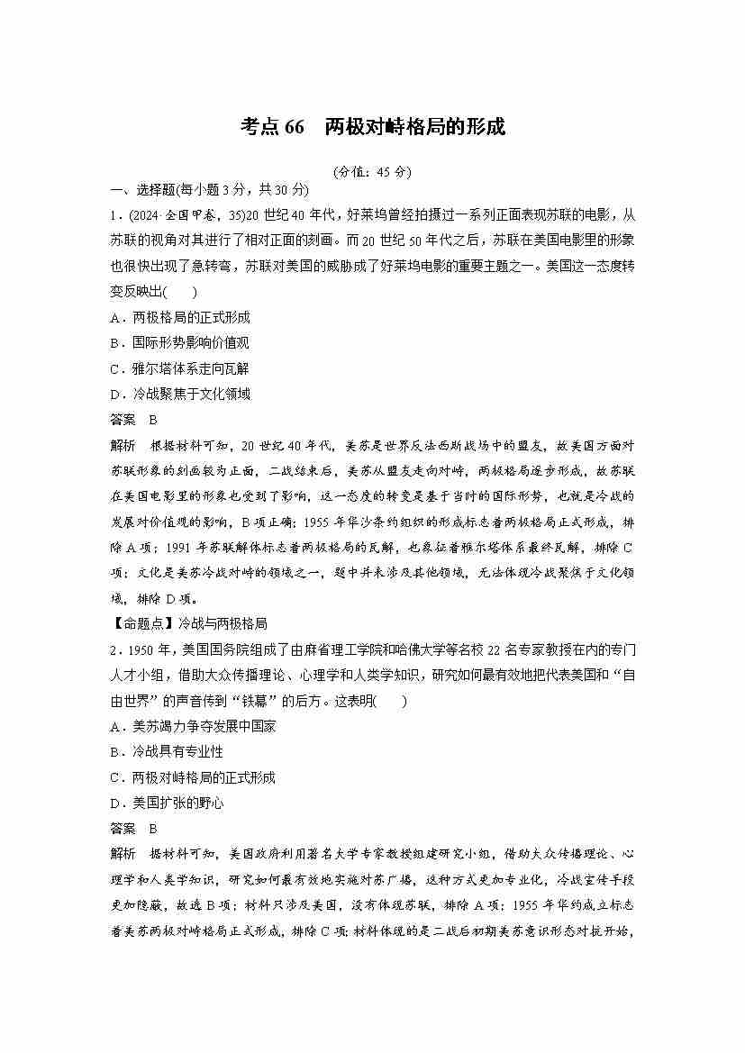 考点66 两极对峙格局的形成(教师版)