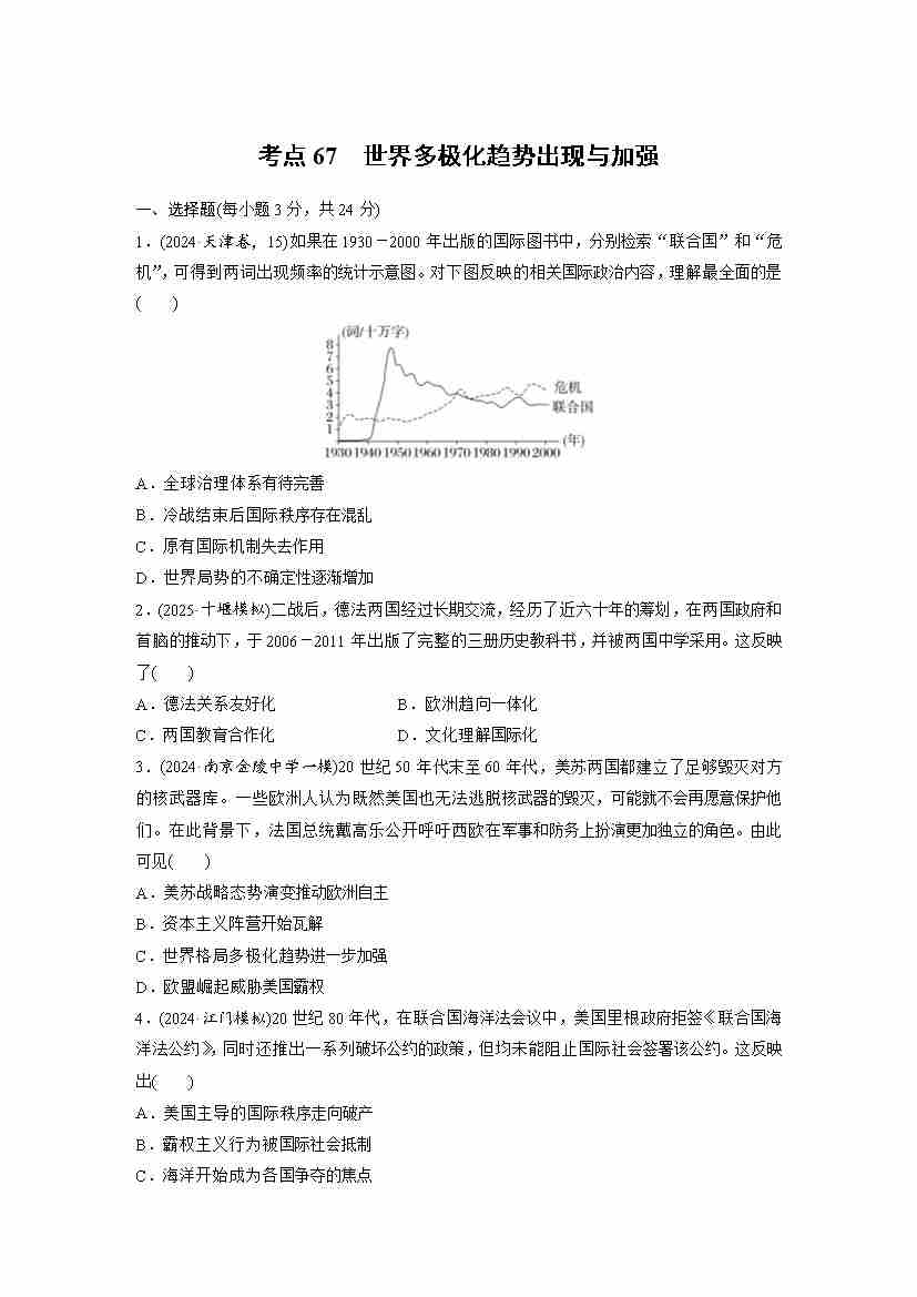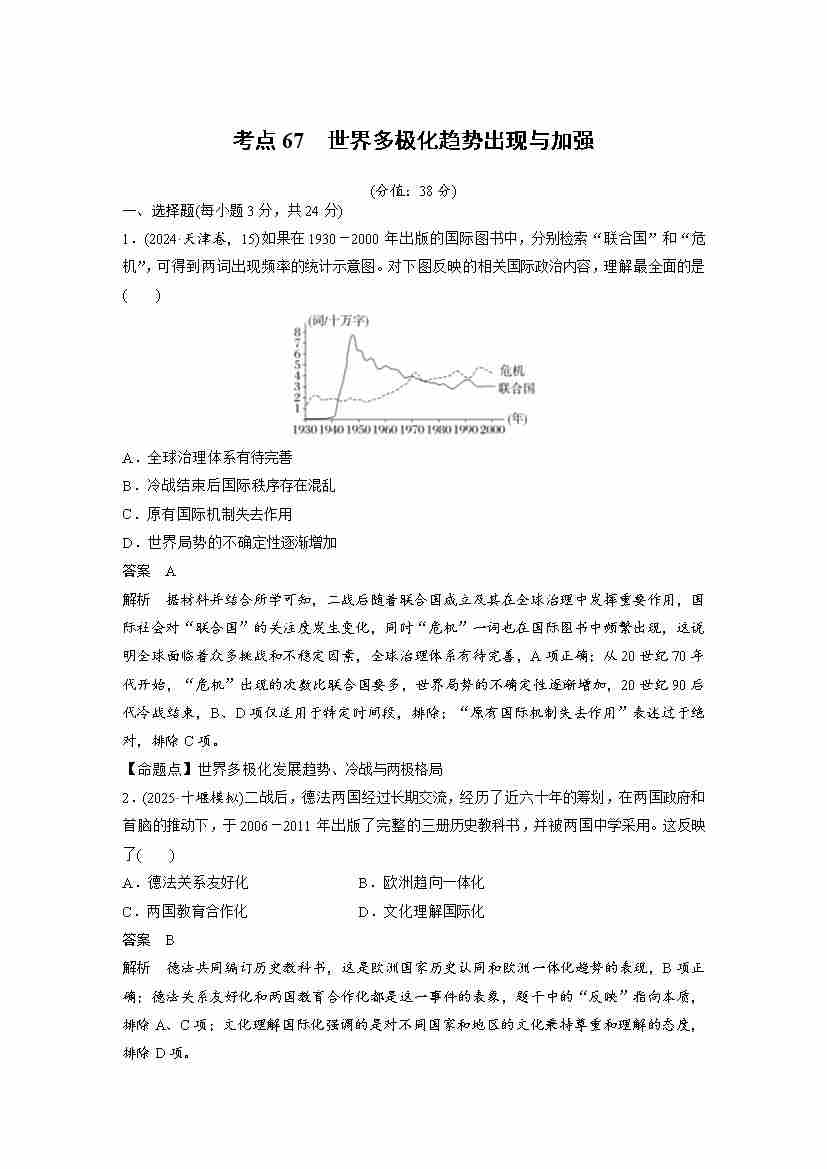 考点67 世界多极化趋势出现与加强(教师版)