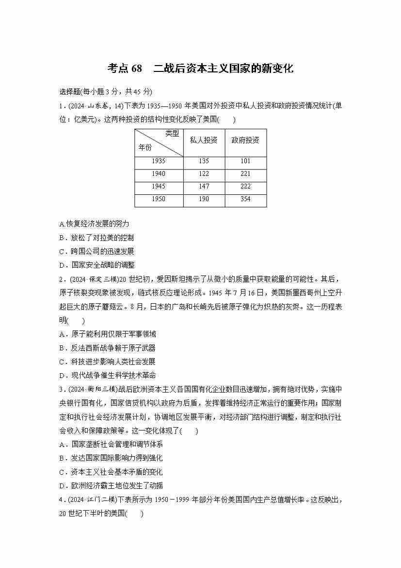 考点68 二战后资本主义国家的新变化(学生版)