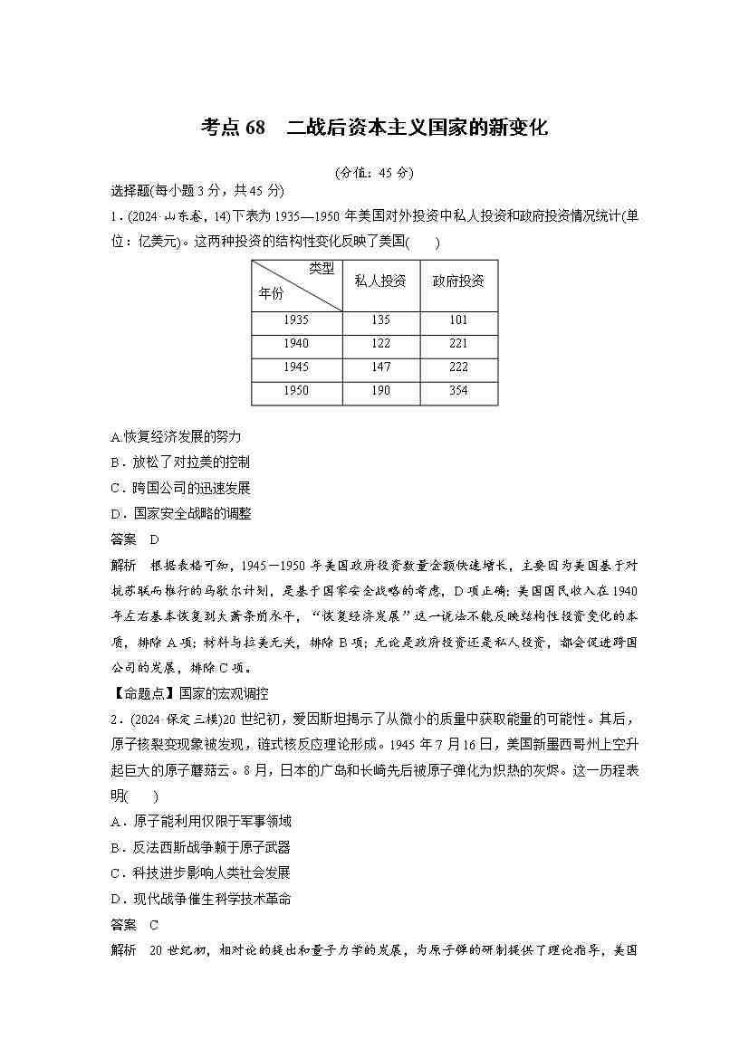 考点68 二战后资本主义国家的新变化(教师版)