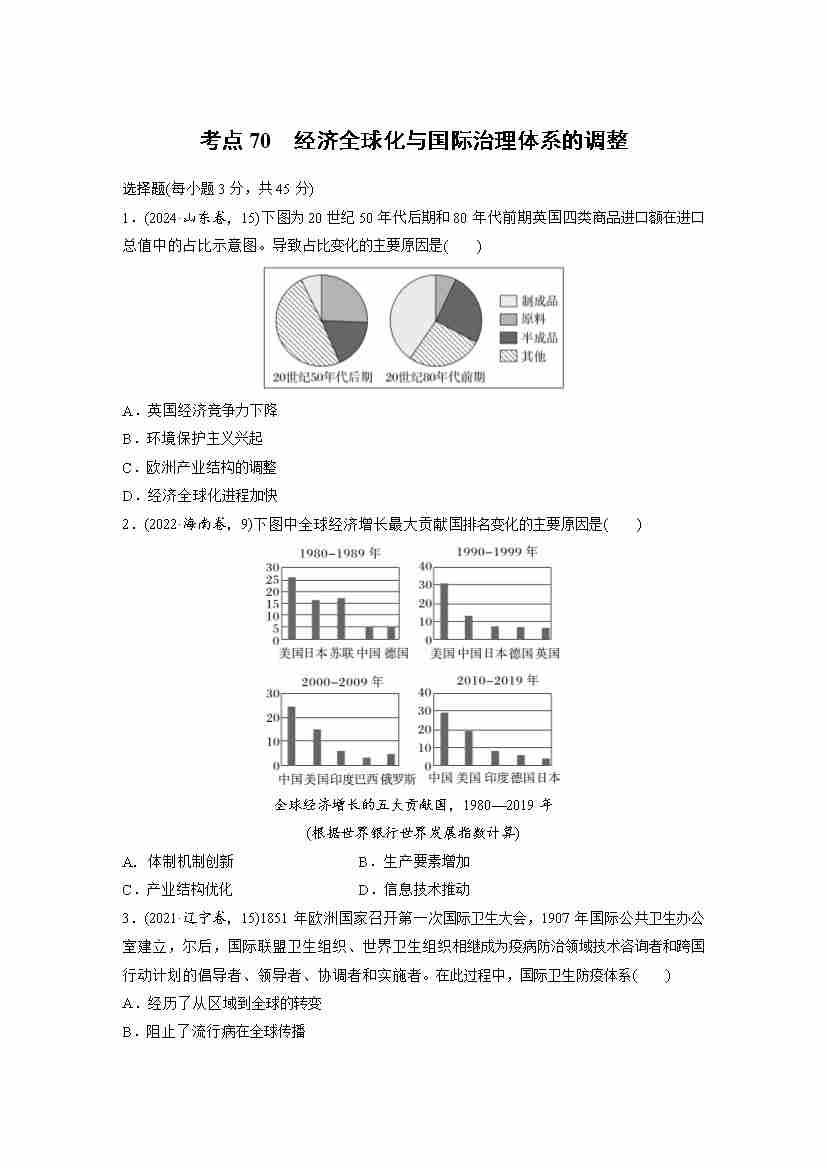 考点70 经济全球化与国际治理体系的调整(学生版)