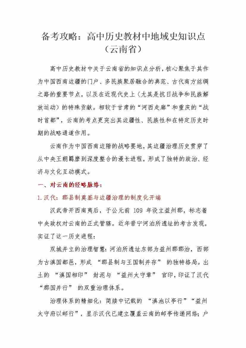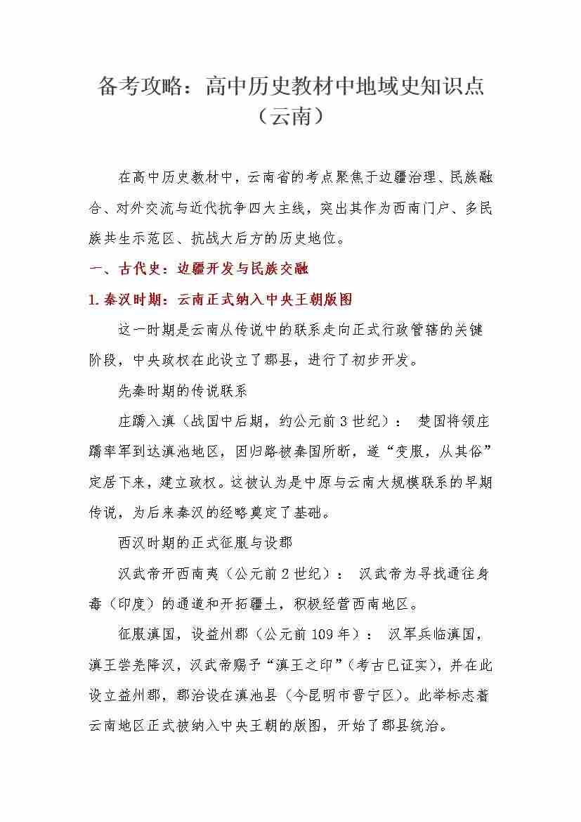 教材中地域史知识点(云南省)-16页