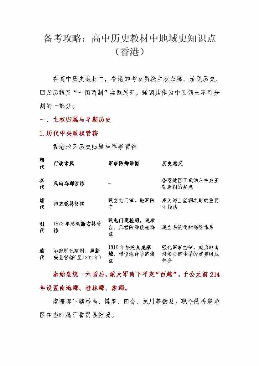 地域史知识点(香港) 讲义 -17页