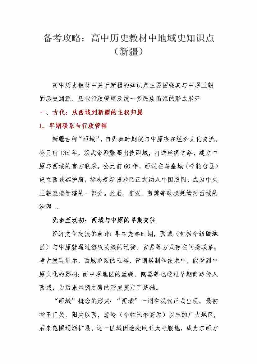 备考攻略 高中历史教材中地域史知识点(新疆)-19页