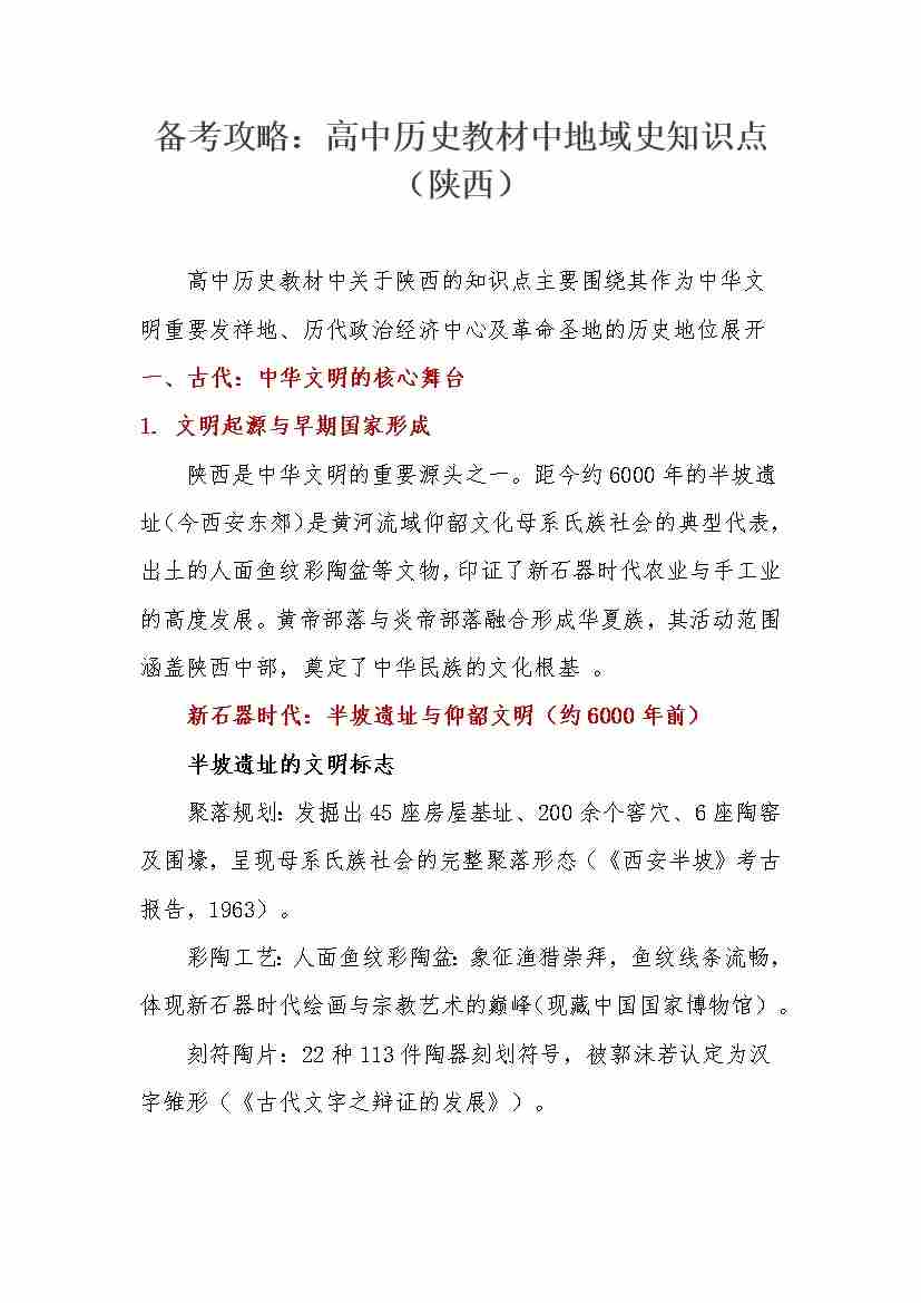 备考攻略:高中历史教材中地域史知识点(陕西)-16页