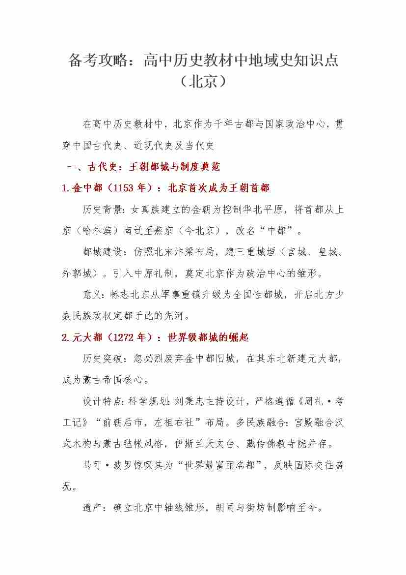 教材中地域史知识点(北京) -16页