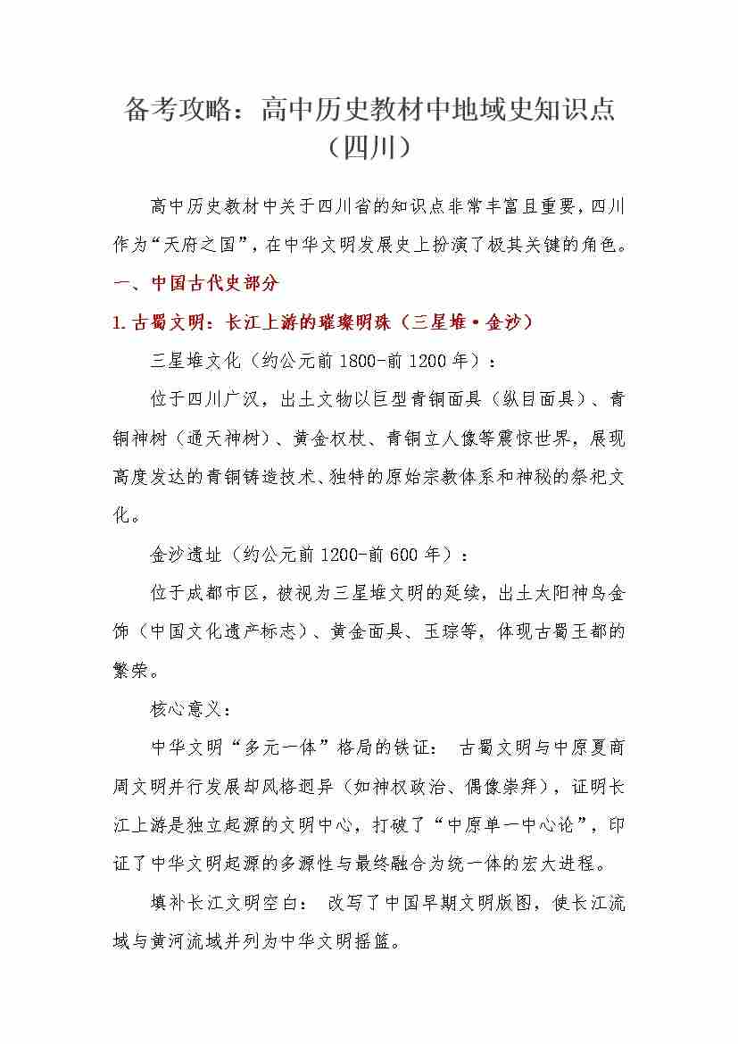 教材中地域史知识点(四川省)-26页