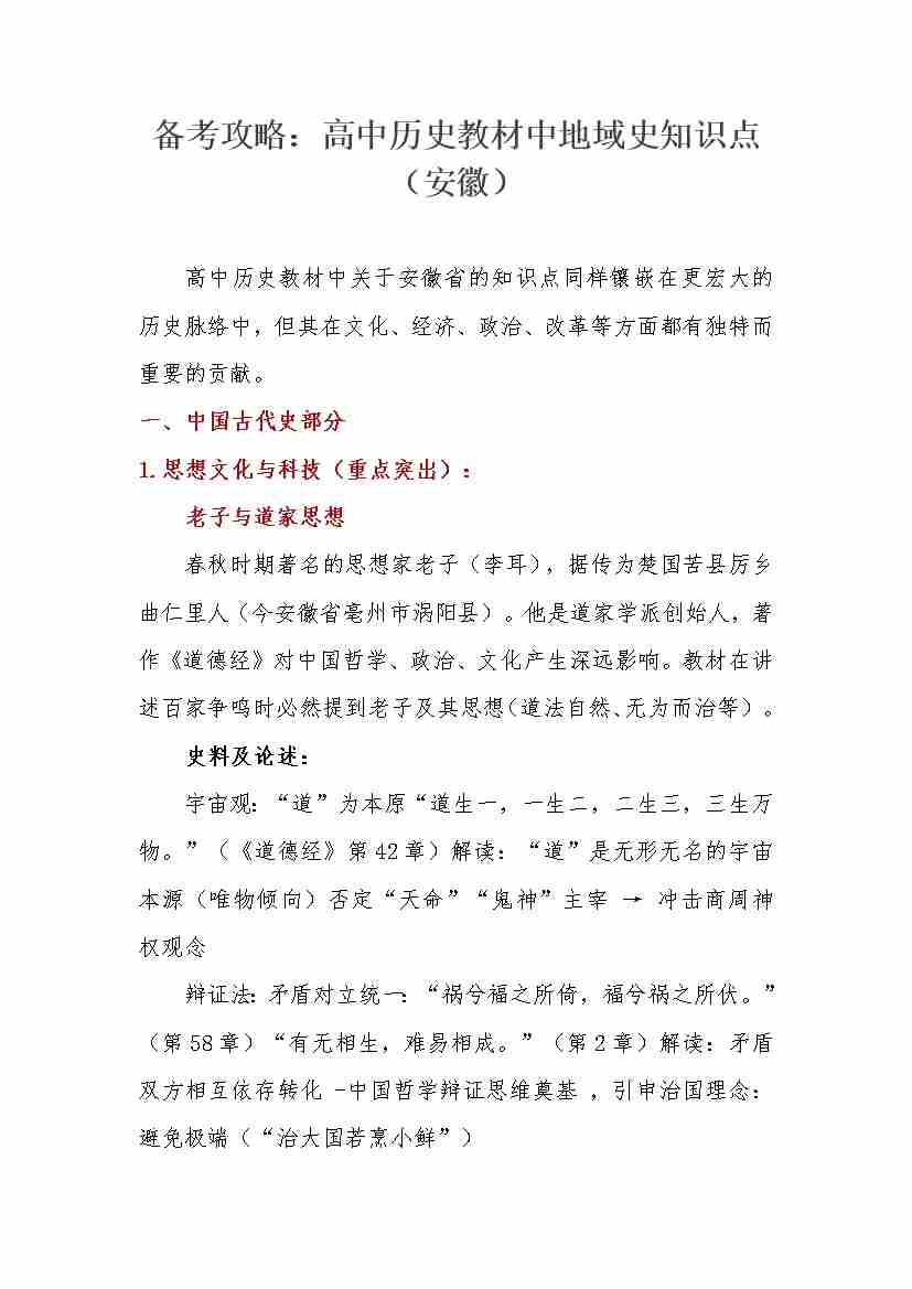 教材中地域史知识点(安徽省)-20页