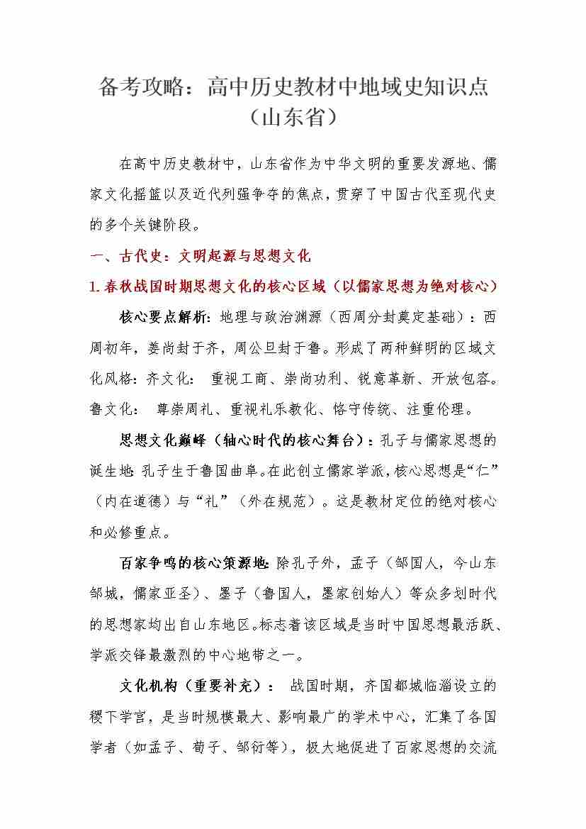 教材中地域史知识点(山东省)-24页