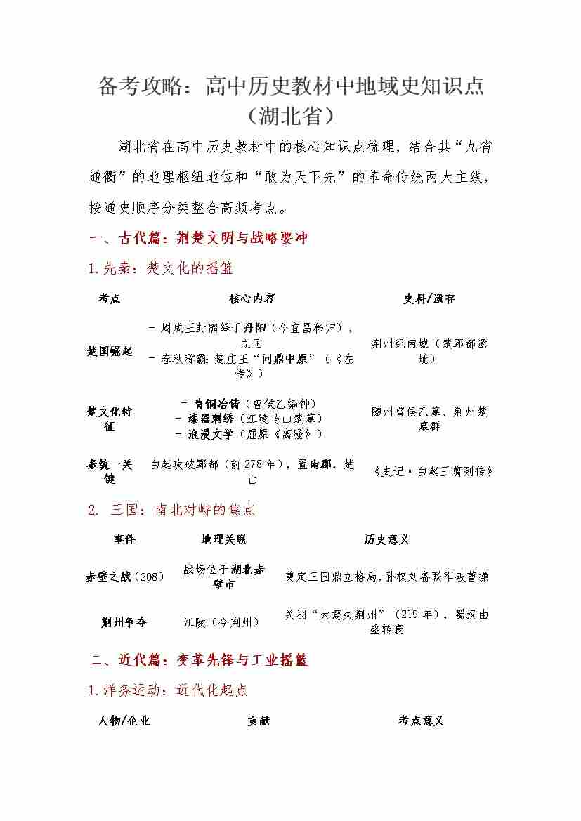 教材中地域史知识点(湖北省)-15页
