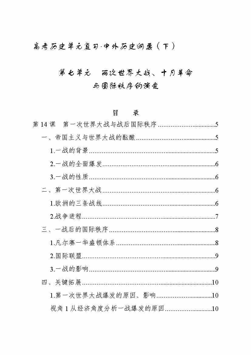 第七单元 两次世界大战、十月革命与国际秩序的演变 知识清单