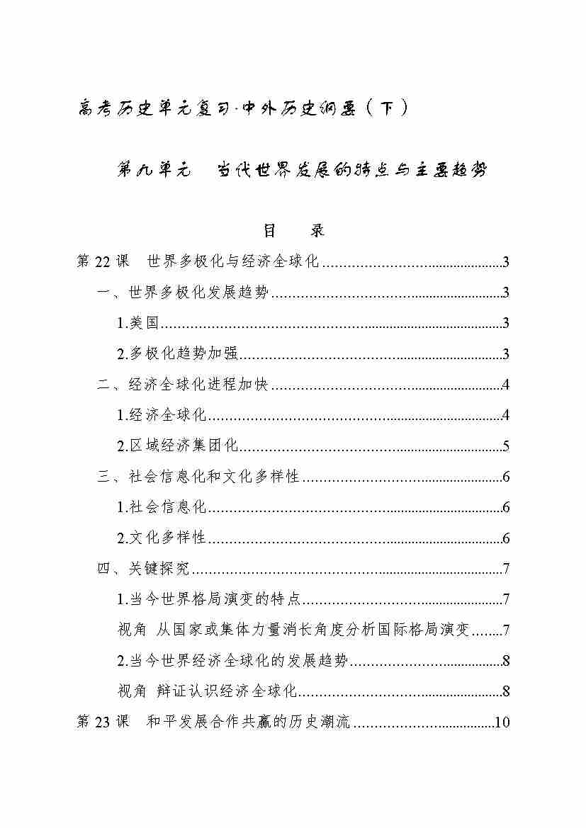第九单元 当代世界发展的特点与主要趋势 知识清单