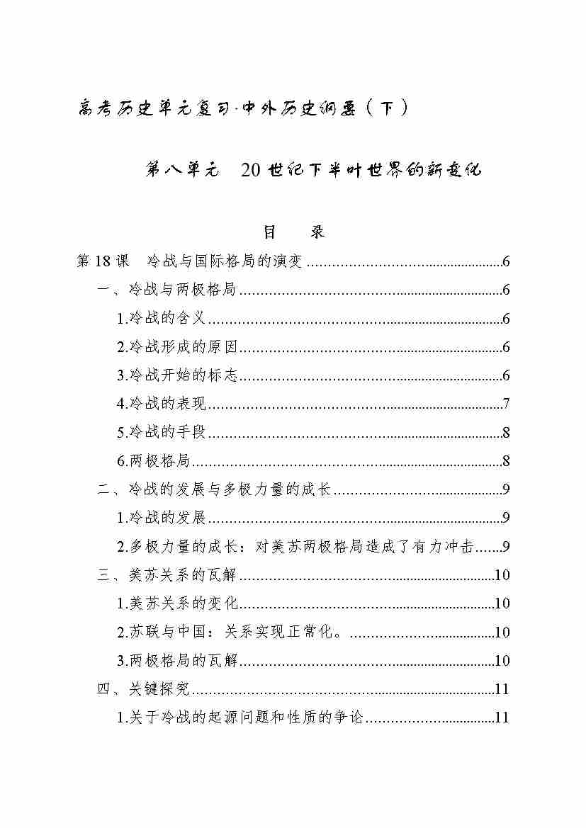 第八单元 20世纪下半叶世界的新变化 知识清单