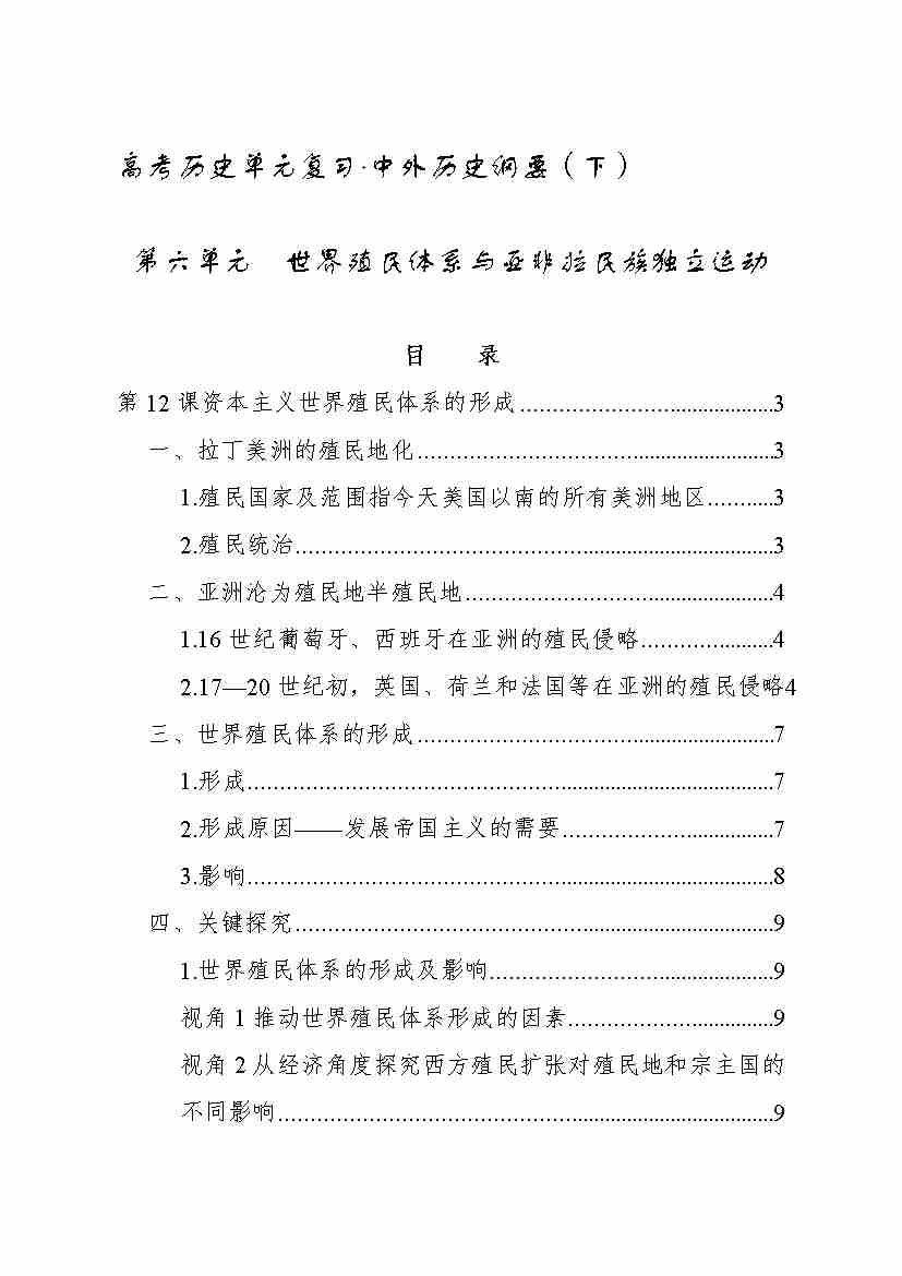 第六单元 世界殖民体系与亚非拉民族独立运动(知识清单)