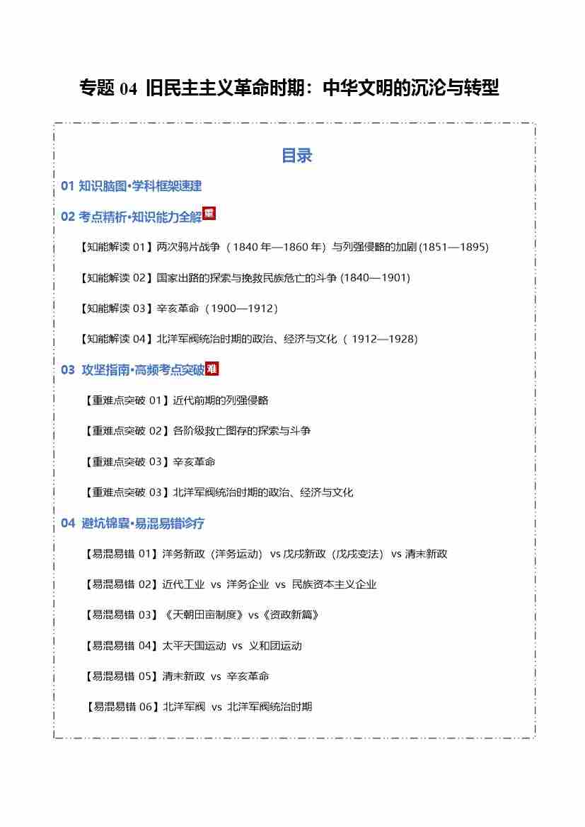 专题04 旧民主主义革命时期:中华文明的沉沦与转型(知识清单)(全国通用)