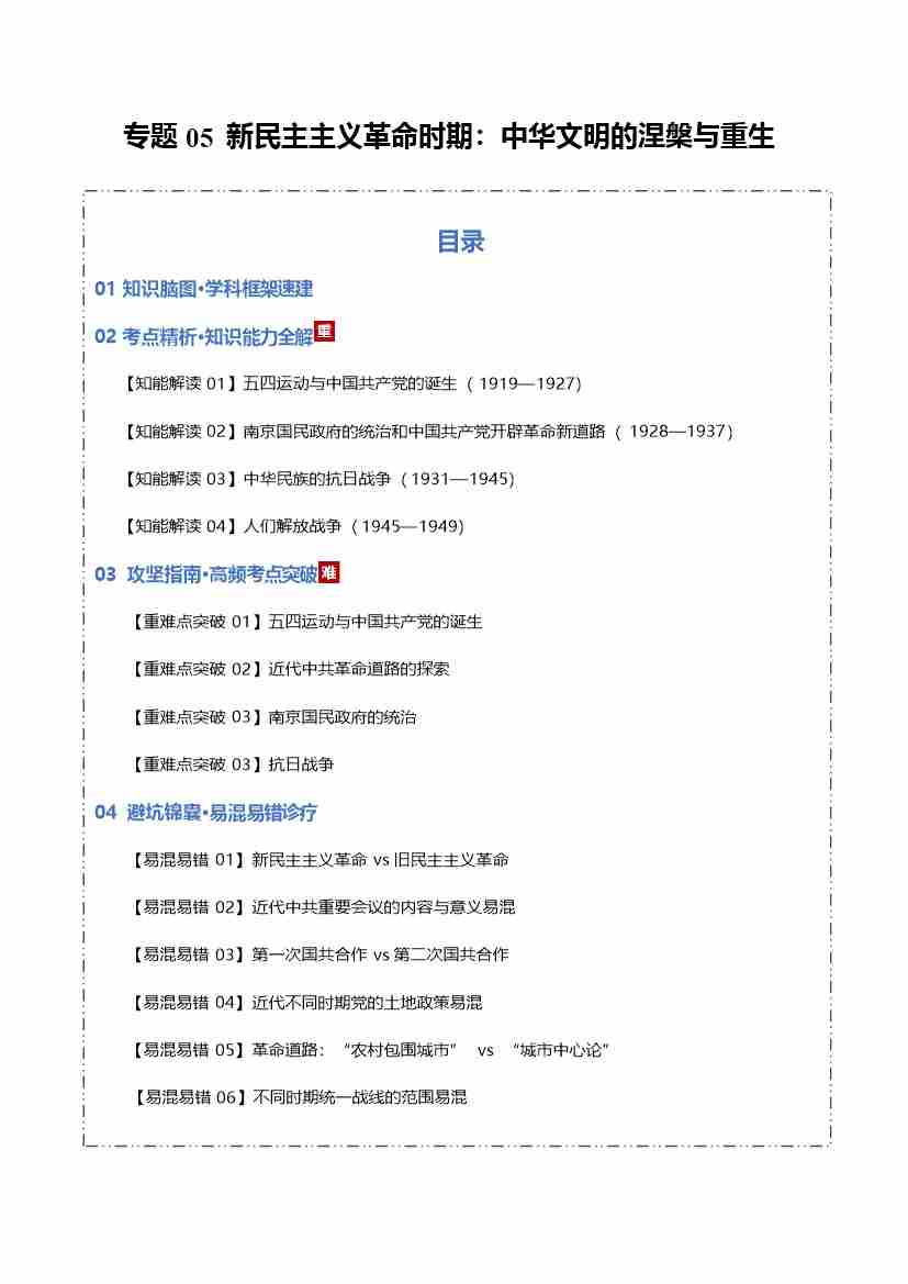 专题05 新民主主义革命时期:中华文明的涅槃与重生(知识清单)(全国通用)